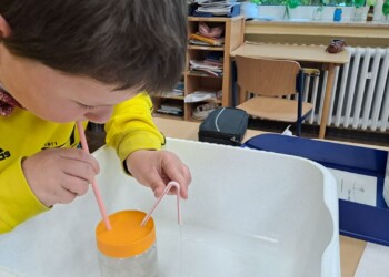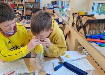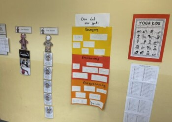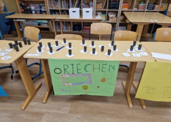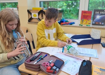 Weil bei uns die Erst- und Zweitklässler und die Dritt- und Viertklässler jeweils zusammen unterrichtet werden, gibt es bei uns Eingangsstufenklassen (die E-Stufe) und Fortgeschrittenenklassen (die F-Stufe).