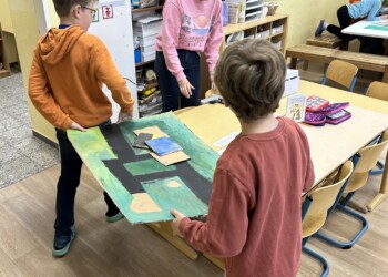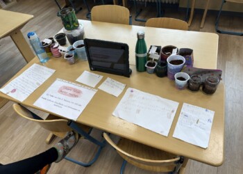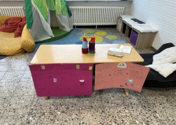 In jedem Klassenraum gibt es einen zentralen Mittelpunkt: unsere große Tischplatte. Hier beginnt der Schultag, hier wird gemeinsam gesprochen, gelernt, gefrühstückt und gespielt.