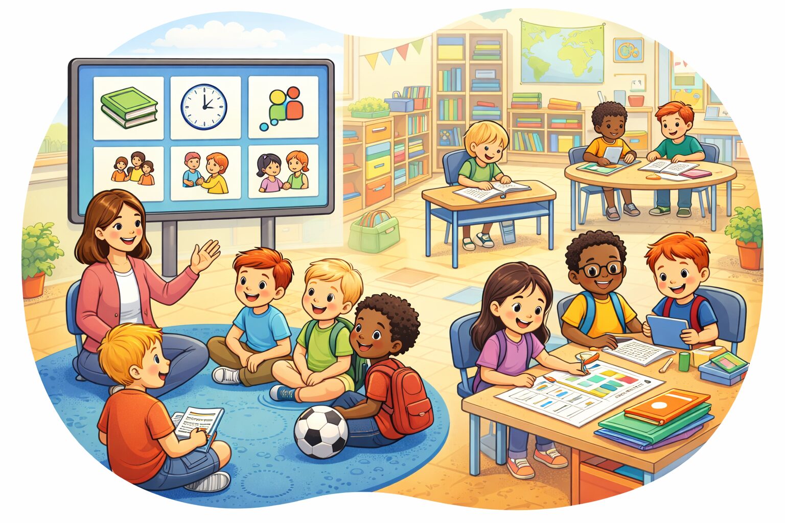 Kinder mit unterschiedlichen Lernvoraussetzungen lernen gemeinsam. Unterstützungsbedarfe werden im Unterricht berücksichtigt, sodass Teilhabe für alle möglichst möglich bleibt.