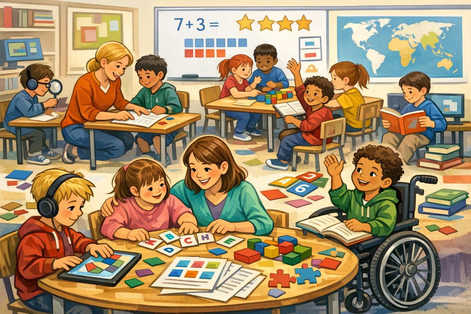 Bei besonderen Unterstützungsbedarfen arbeiten wir eng mit sonderpädagogischen Fachkräften und außerschulischen Partnern zusammen. Unser Ziel ist es, Lernhindernisse frühzeitig zu erkennen und Teilhabe im gemeinsamen Unterricht zu ermöglichen.